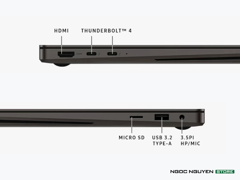 Ở bên trái với: HDMI, 2 cổng Type-C hỗ trợ ThunderBolt 4.