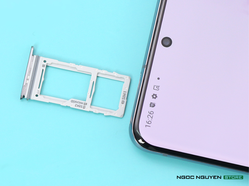 Mặt trước của máy là màn hình Infinity-O, camera trước được đặt trong lỗ khoét nhỏ ở trung tâm như trên bộ đôi Galaxy S20 và Galaxy S20 FE. Đồng thời cũng được phủ kính cường lực Corning Gorilla Glass 6 có khả năng chống chịu va đập, trầy xước tốt.