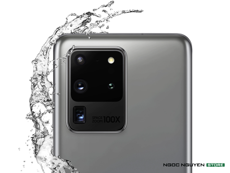 Điểm tạo nên sự khác biệt đó chính là mặt lưng Galaxy S20 Ultra khi được hãng điện thoại Samsung trang bị tận 4 camera, với dòng chữ Space Zoom 100x vô cùng ấn tượng. Máy vẫn có khả năng kháng nước, bụi tiêu chuẩn IP 68.