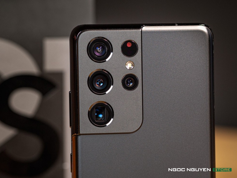 Cụm camera của Galaxy S21 Ultra 5G 256GB không chỉ có thiết kế hiện đại mà còn sở hữu tới 4 camera. Trong đó camera chính của máy có độ phân giải tới 108MP. Kết hợp với đó là 2 camera tele, dùng cảm biến 10MP và 1 camera góc siêu rộng dùn cảm biến 12MP có chế độ siêu ổn định Super Steady Video cho phép chống rung khui quay video.