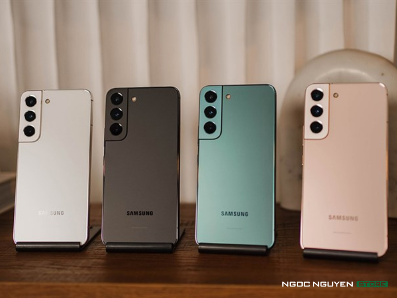 Ngoài 2 màu cơ bản trắng đen thì S22 còn có 3 tùy chọn trẻ trung hơn gồm hồng, tím và xanh lá cực kỳ trẻ trung. Bên cạnh đó nhờ màn hình không cong nên 4 cạnh máy được làm rất đều cùng ngôn ngữ thiết kế phẳng càng khiến bề ngoài của thiết bị trở nên rất sang trọng và thu hút. Bên cạnh đó máy cũng áp dụng chuẩn kháng nước và bụi IP68 và được trang bị cảm biến vân tay siêu âm dưới màn hình vô cùng cao cấp.