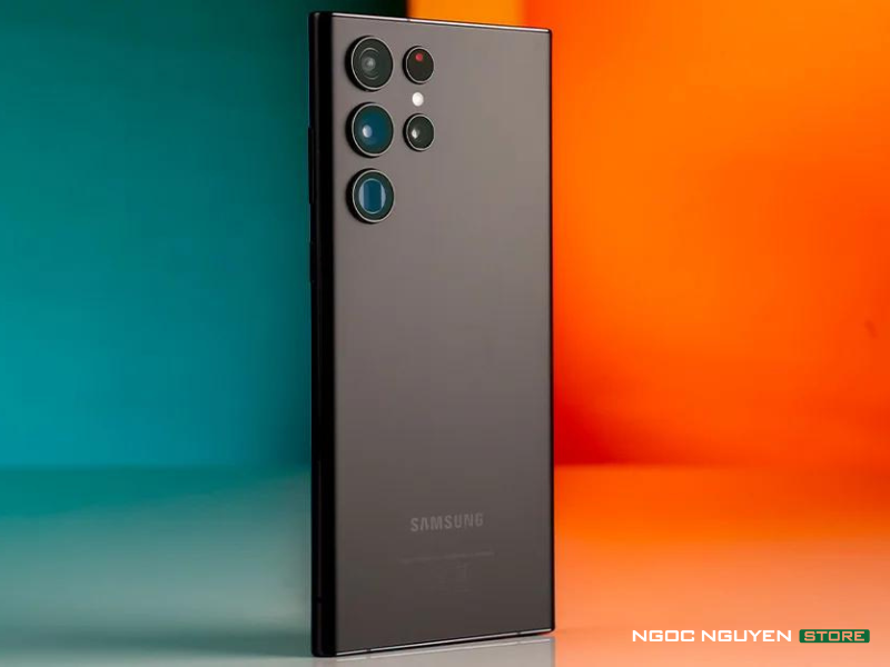 Phần mặt lưng điện thoại được làm nhám nên hạn chế tốt việc bám dấu vân tay, có thiết kế cũng khá đơn giản nhưng vẫn toát lên vẻ sang trọng và cao cấp của chiếc máy. Cụm camera sau trên Galaxy S22 Ultra 5G được thiết kế trần tạo cảm giác gọn gàng và cũng tạo nên một điểm nhấn độc đáo cho chiếc máy.