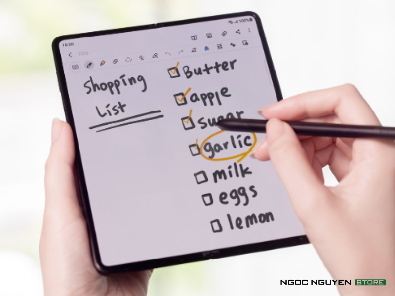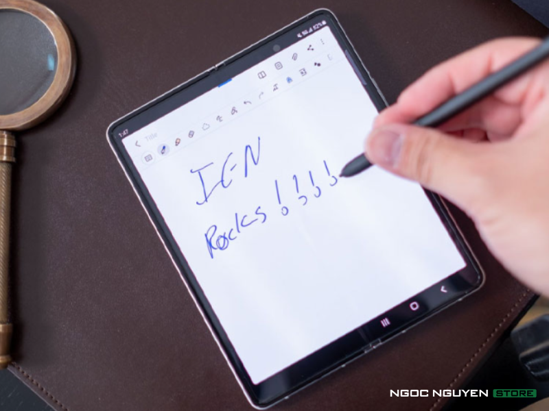 Galaxy Z Fold3 cũng hỗ trợ bút S Pen lần đầu được áp dụng trên điện thoại màn hình gập. Mọi thao ghi chú, phác thảo hoặc đánh dấu vào tài liệu đều được thực hiện một cách dễ dàng.