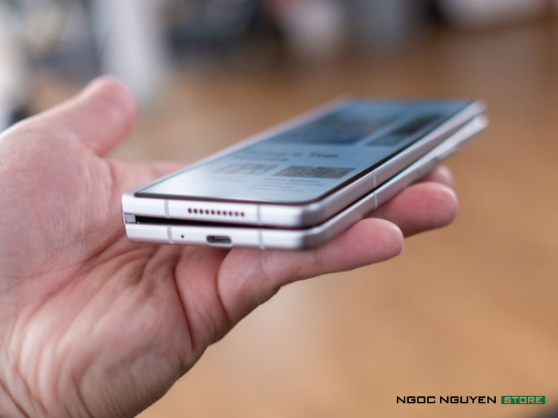 Nhờ đó, tổng thể máy cũng đã mỏng nhẹ hơn khi trọng lượng giảm xuống còn 271 g, độ dày phần bản lề khi gập lại còn 16 mm cho cảm giác cầm nắm, sử dụng điện thoại Z Fold3 giờ đây đã thoải mái và dễ chịu hơn rất nhiều.